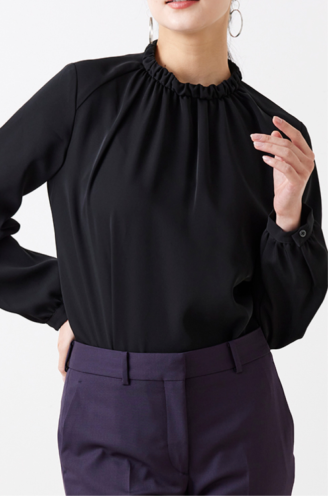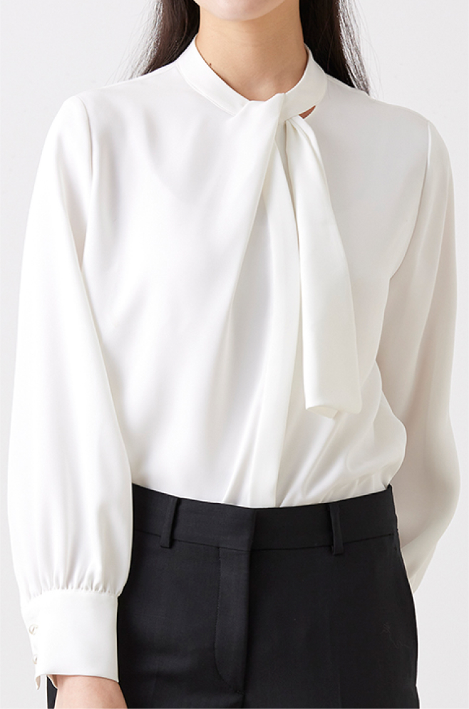 オーダーブラウスは、商談や会議などのビジネスシーンでは清潔感と信頼感を演出し、スーツやジャケットと合わせてプロフェッショナルな印象に仕上げます。オフィスカジュアルでは、きちんと感に程よくリラックスした雰囲気を演出します。裾にもデザイン性があるため、インでもアウトでもおしゃれに着用できます。