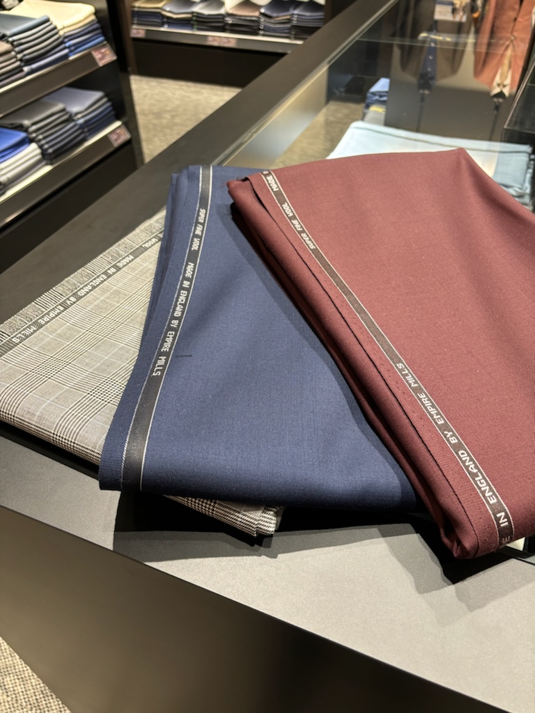 店舗で取り扱っているものの多くはイタリア生地とイギリス生地があります。