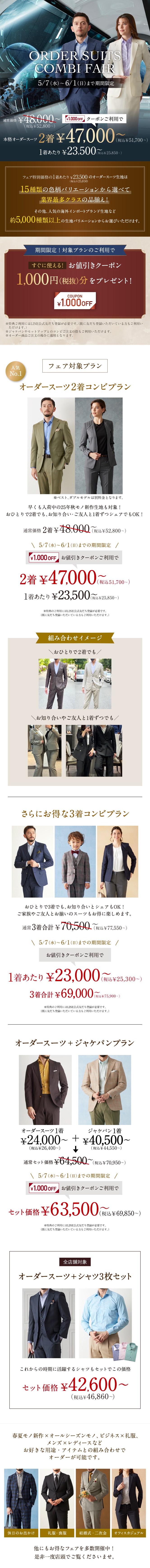 ▶本格オーダースーツ2着¥46,000~(税込¥50,600~)