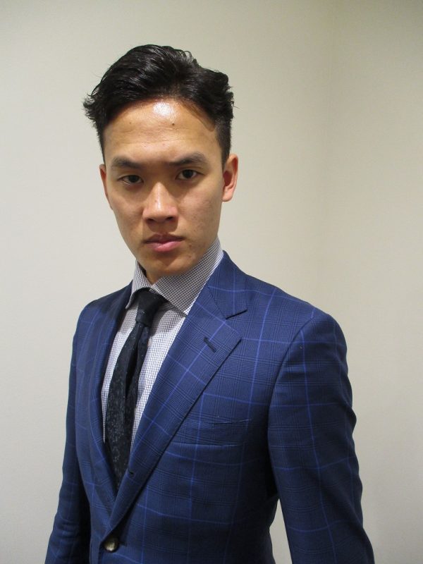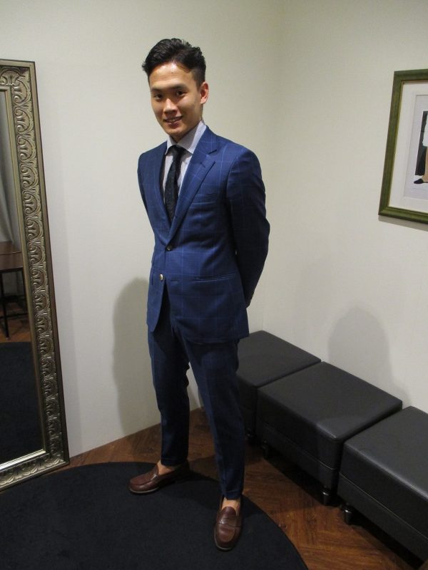 ブルーベースのグレンチェックにウィンドウペンが入った