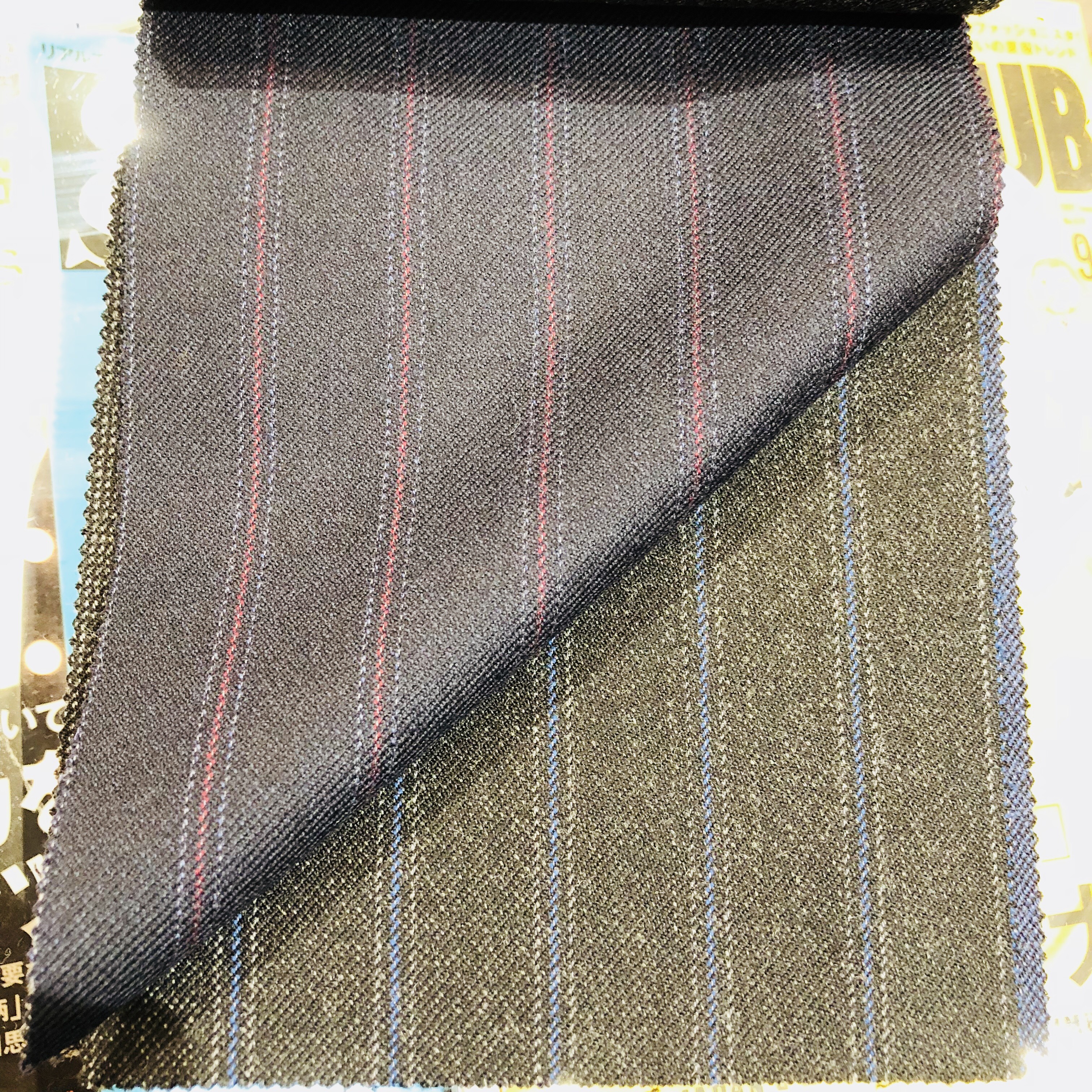 オルタネートストライプとヘリンボーンの合わせ柄。秋冬に使いやすい厚み(目付)と言えます。重厚感・貫禄・説得力が出ます。
