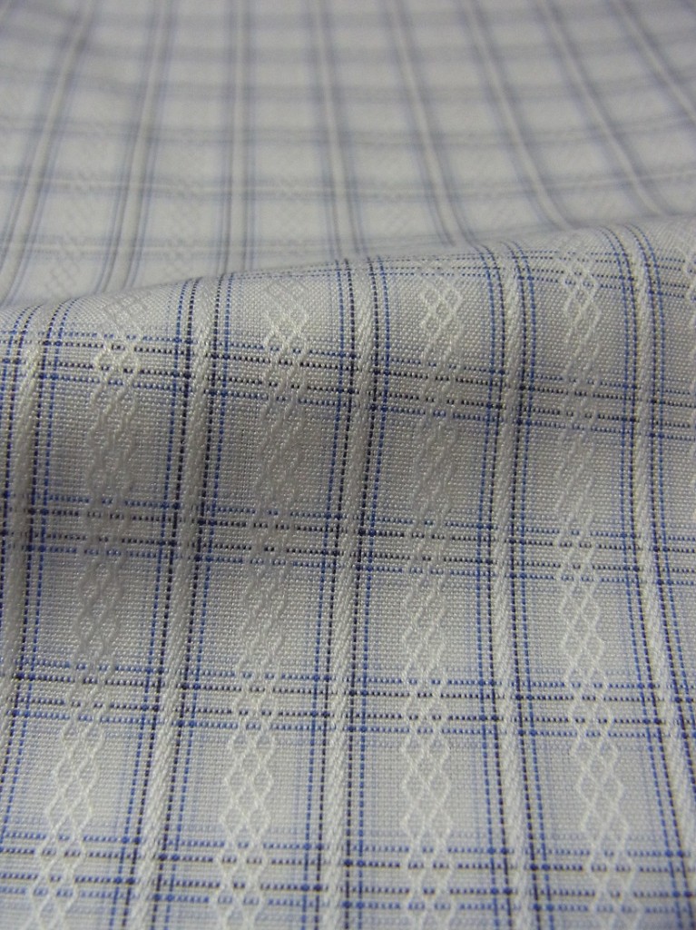 次に、こちらもチェックですが幾何学模様の織りが重なっていますね。