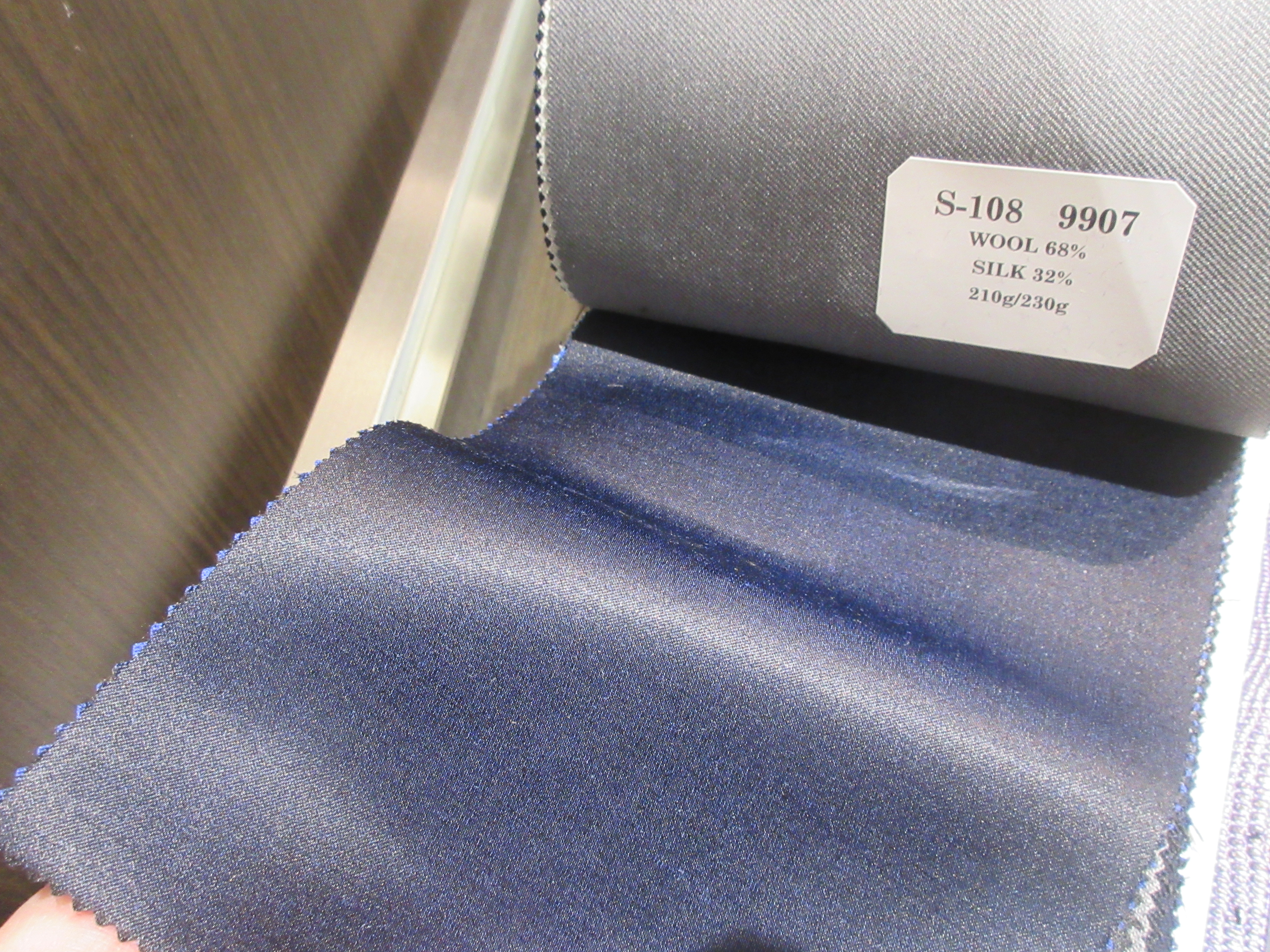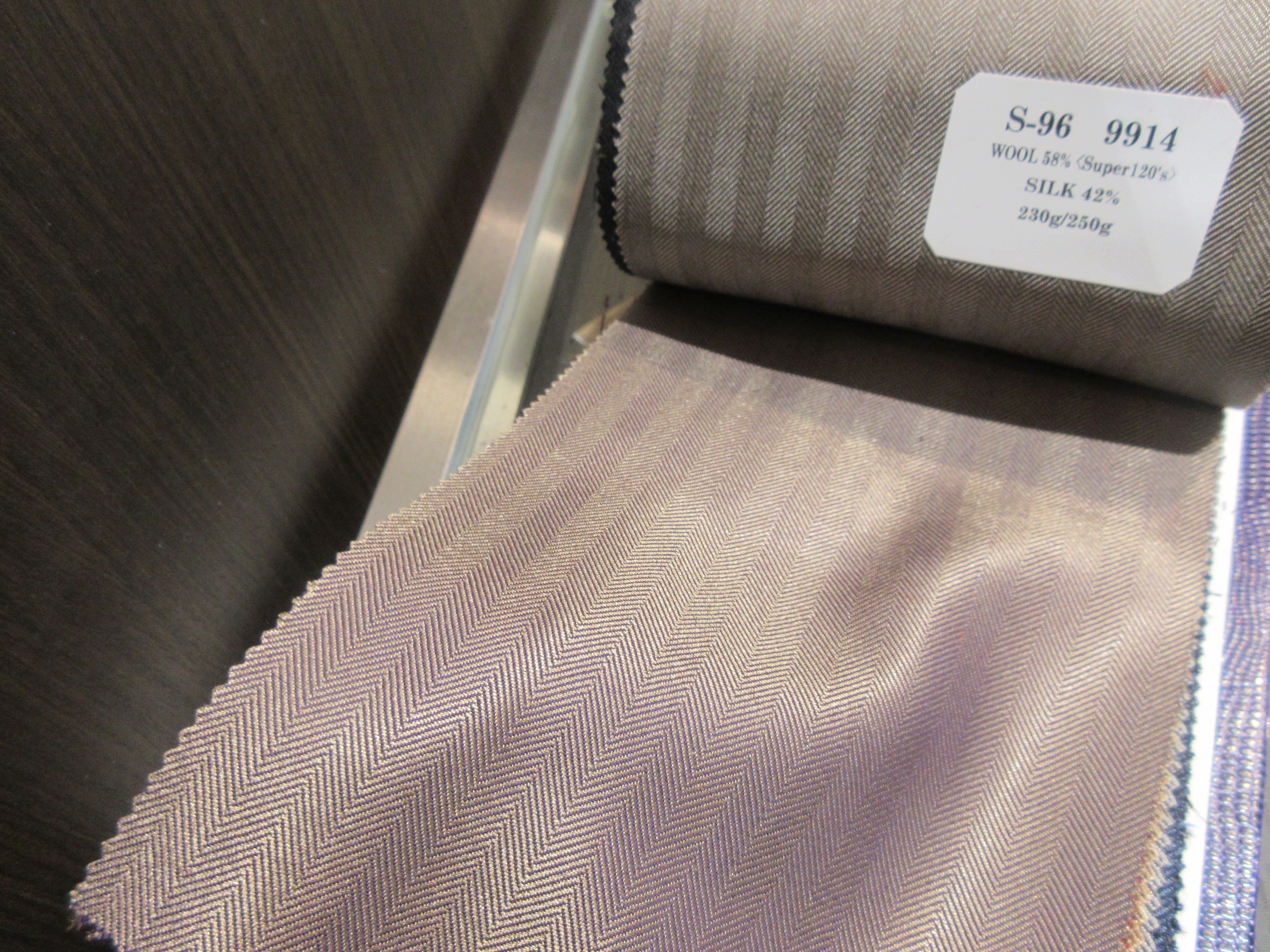 今回は光沢感のあるシルク混紡の生地をご紹介いたします。