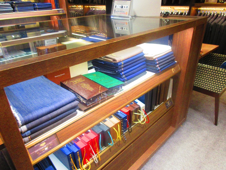 ここにはジャケパンで使えるジャケットの生地を置いていたり、