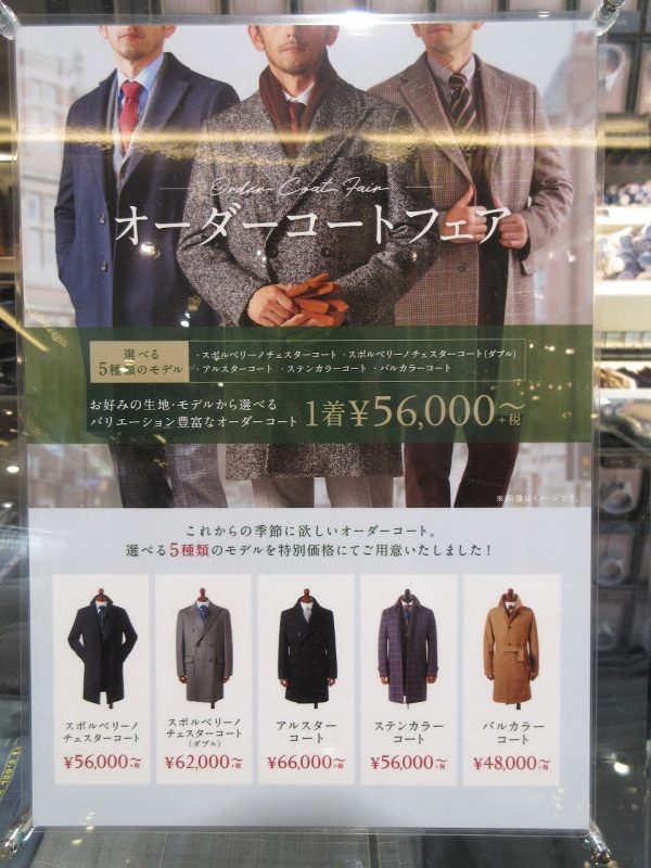 コートも同じく1か月少しほどご納期を頂きますのでコートをお考えの方はぜひお早めにご来店ください。