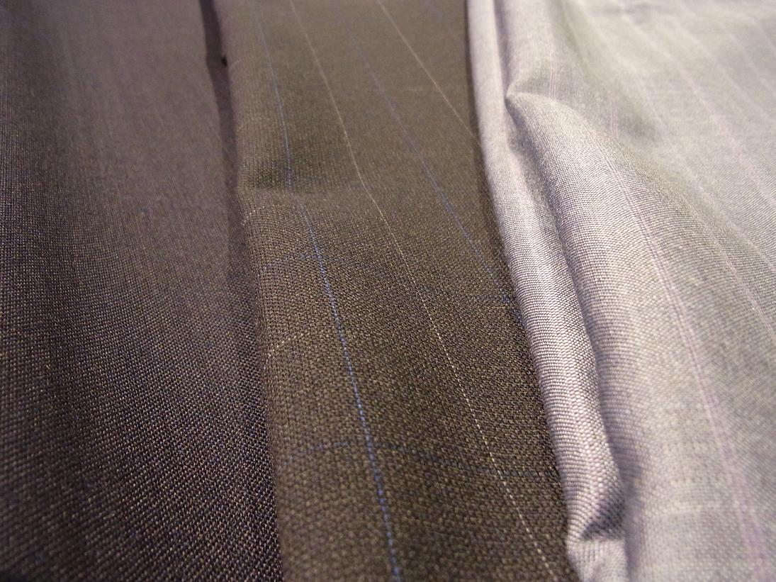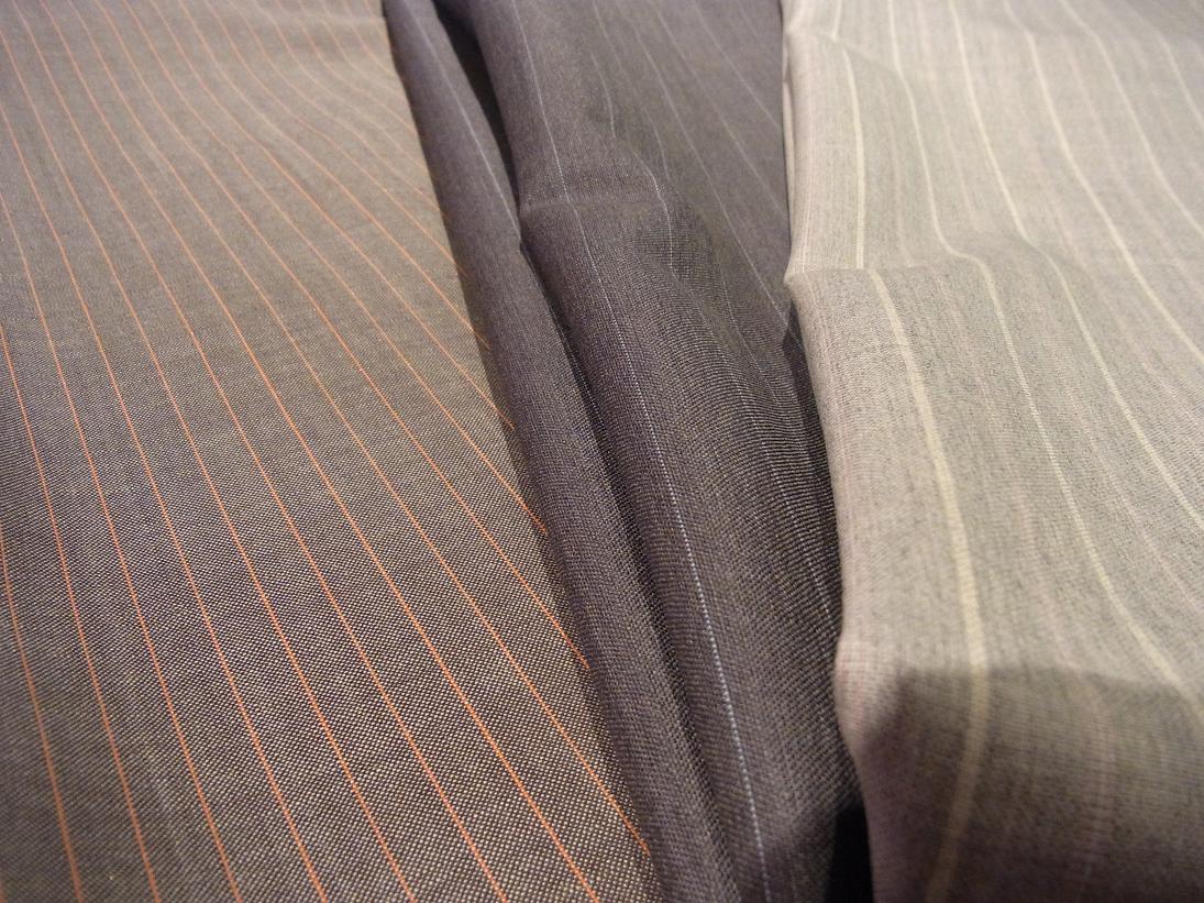 ブルーのラインが美しいチェックに、シルバーストライプ、フレスコの様な生地感のネイビー。