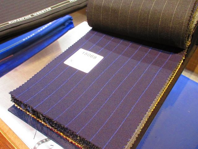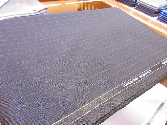 まず初めにネイビーにパープルのストライプが入った生地です。
