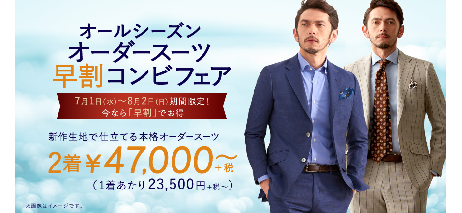通常オーダースーツ2着で¥48,000~が、早割フェアですと2着¥47,000~となります!