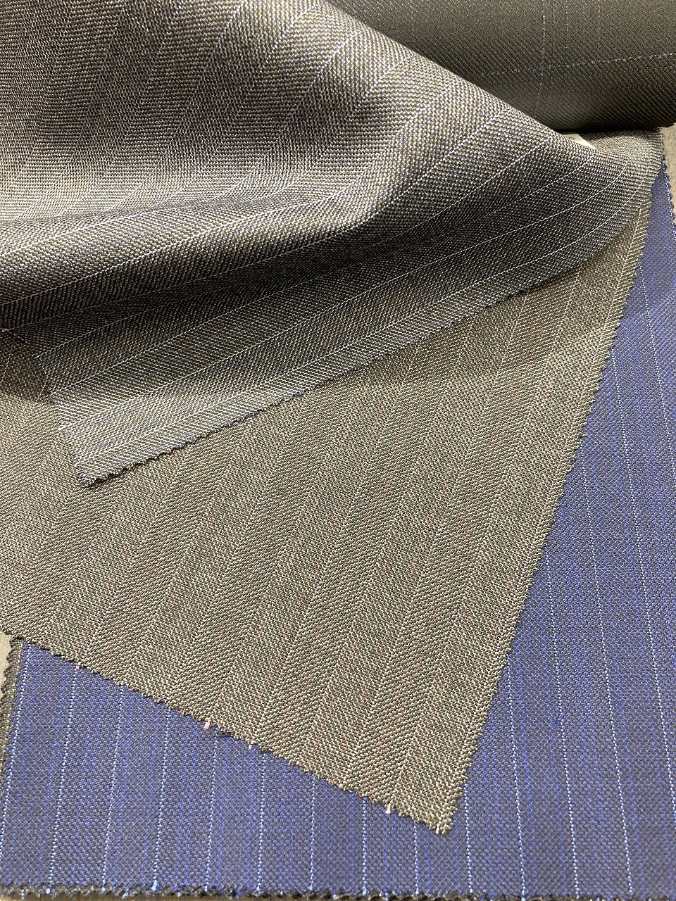 1本ずつストライプの種類を変えており、クラシックな雰囲気ながら上品な光沢感があるので落ち着いていながらも色気のある雰囲気の生地となっております。