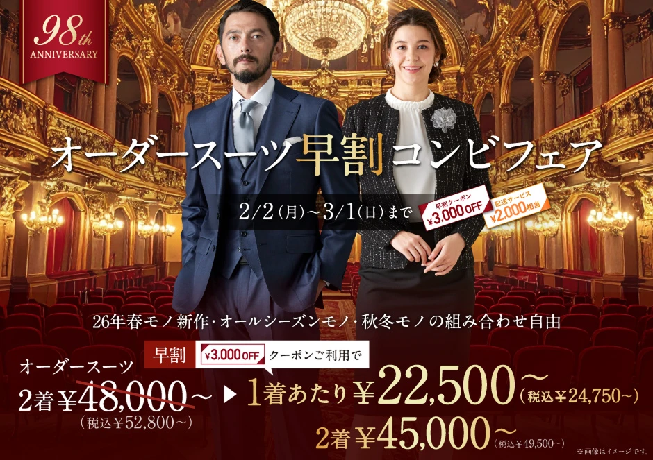 ■オーダースーツをお買い上げの方に、2時間分サービス券 をお渡しいたします。
