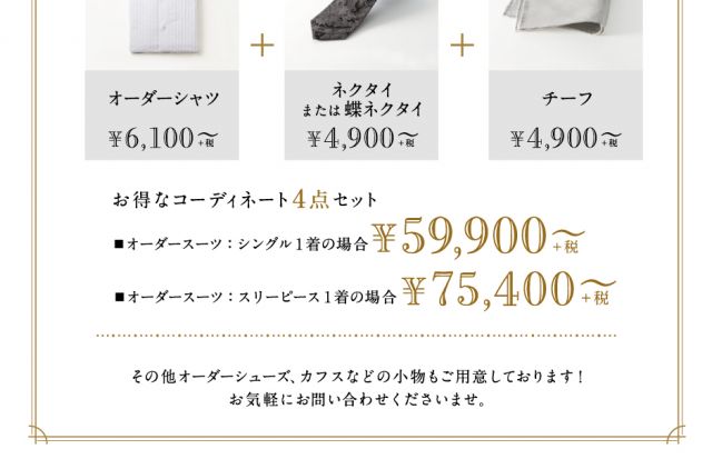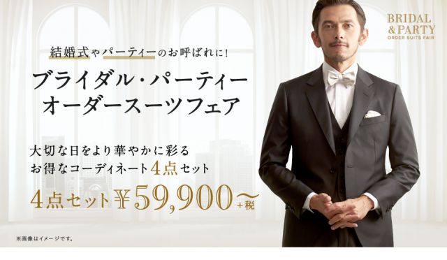 結婚式用やパーティー用、二次会等オーダースーツお持ちでない方はぜひこちらのフェアをご利用ください↓
