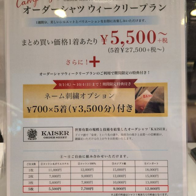 複数枚お買い求めであれば、1着あたり¥5,500~ご案内可能でございます。