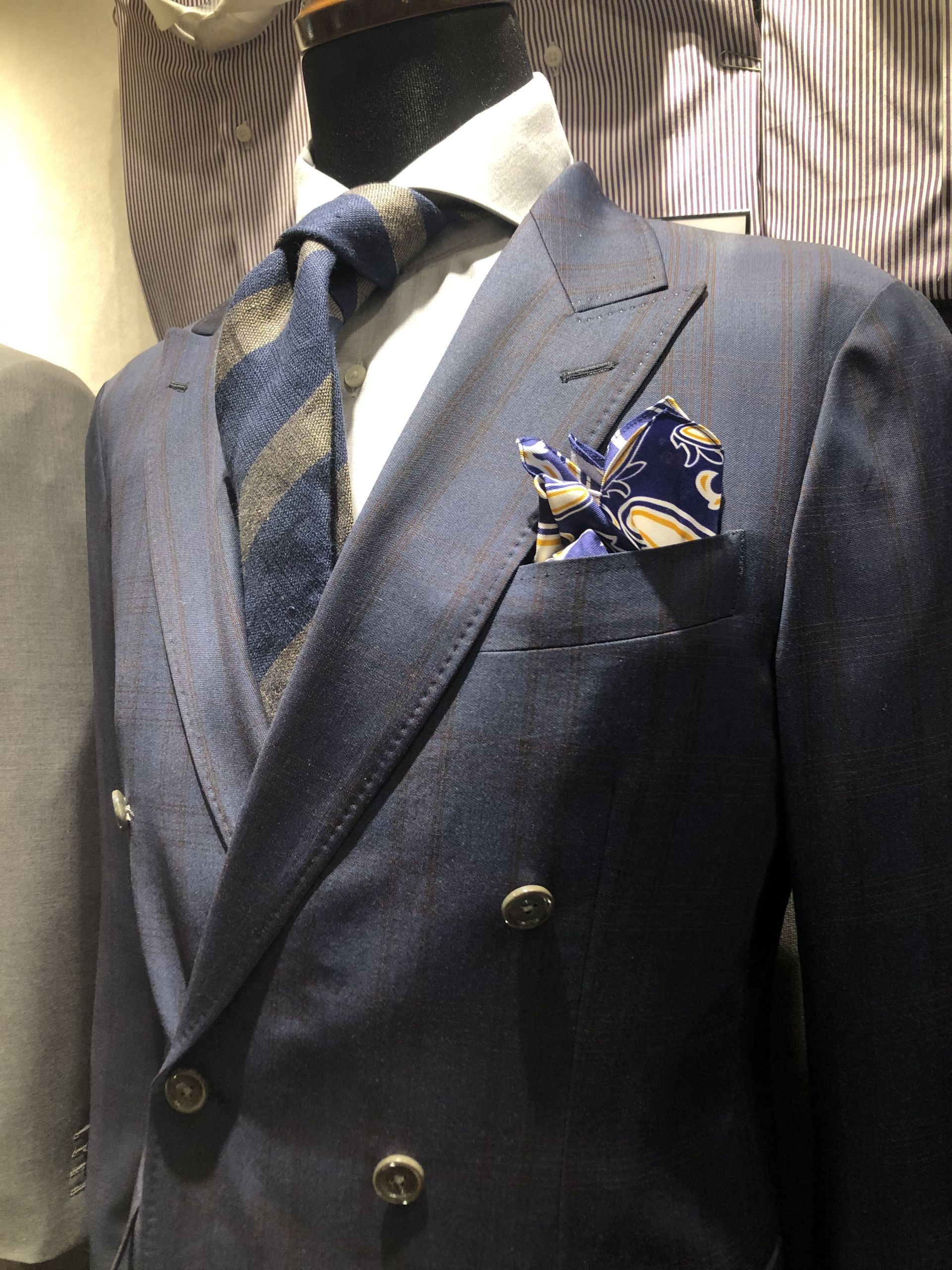 全く同じではございませんが、この生地でダブルスーツをお作りするとこんな感じになります。