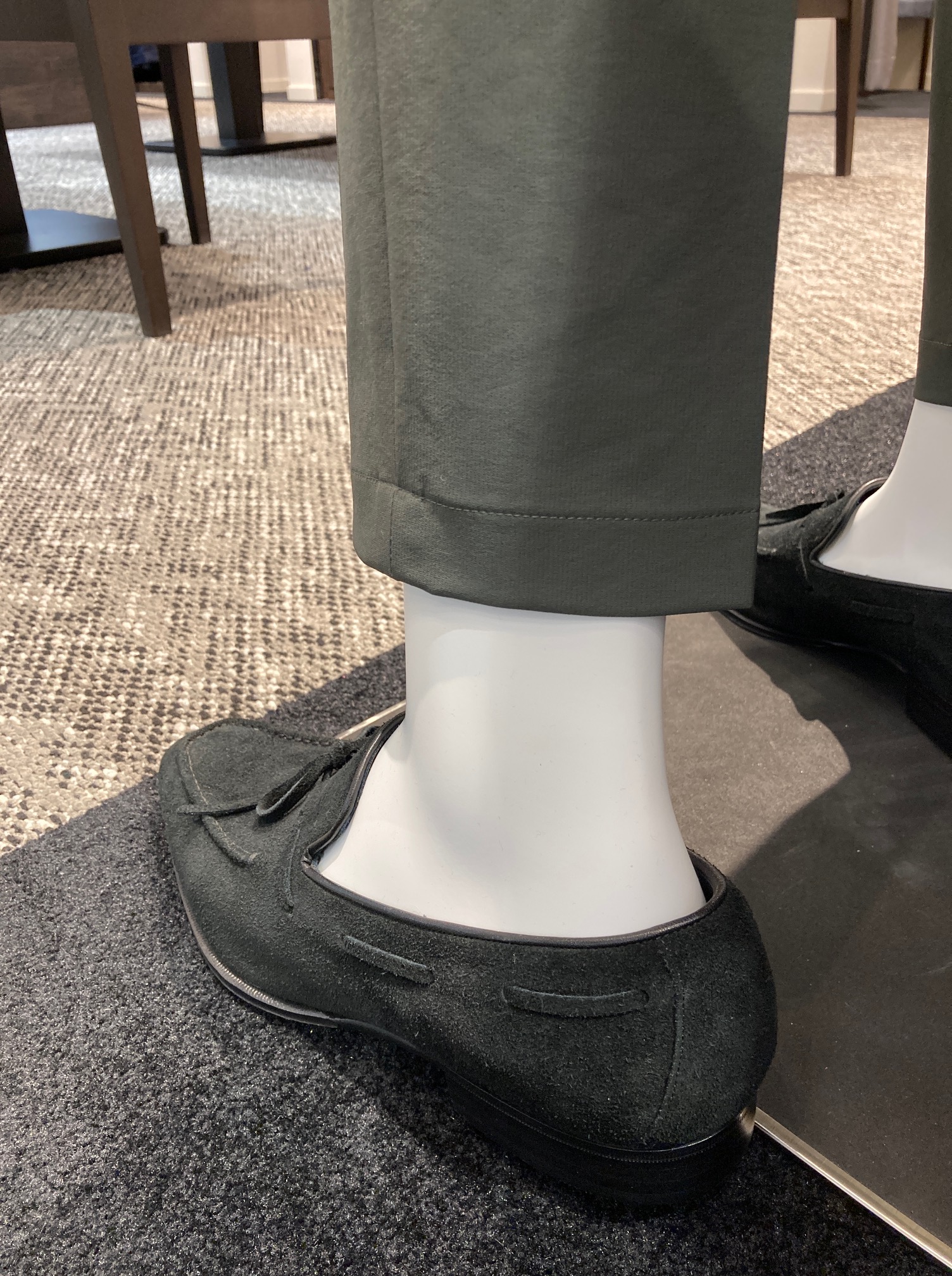 裾口はタタキ仕上げにローファーやスニーカーを合わせ軽快にいかがでしょうか。