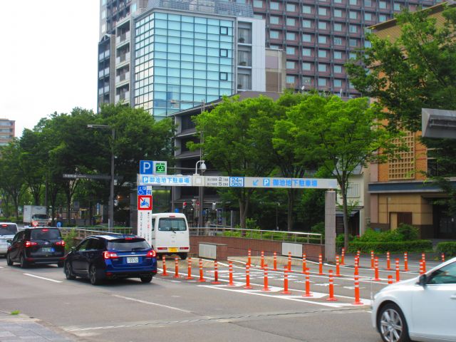 御池地下駐車場は2層構造で、この出入口からは地下2階まで直結しております。
