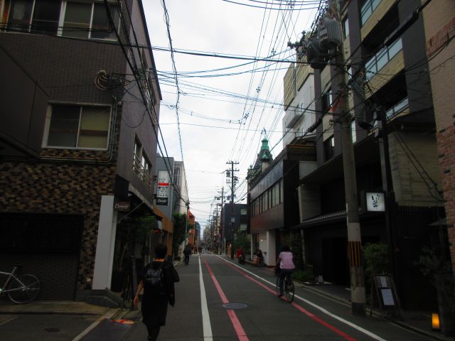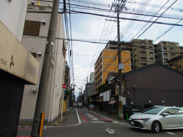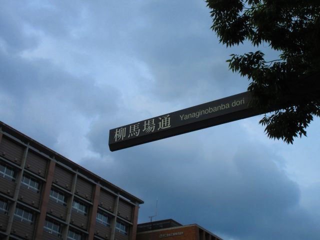 地上に上がり、西方向に進むと柳馬場通の目印が見えます。