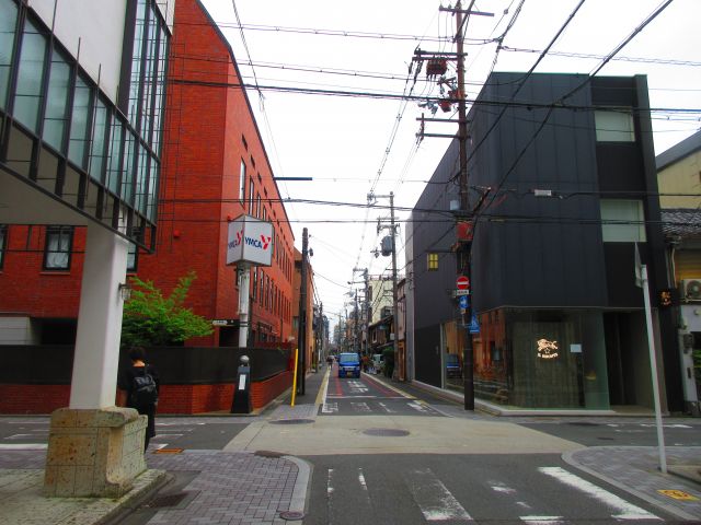 2つめの交差点が三条通りにあたります。京都YMCAの建物が目印です。