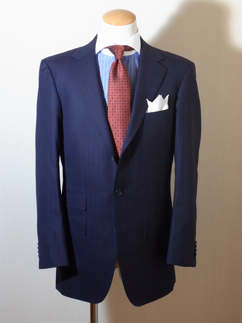 さて、本日はスキャバルの生地を使ったかなり格好いいネイビーのスーツのご紹介です。
