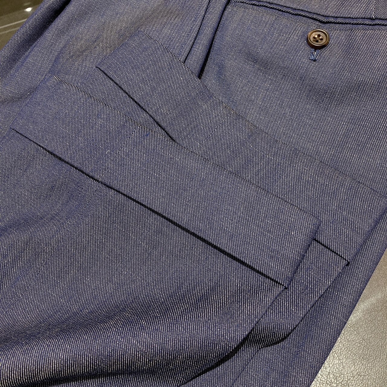 デニム調でありながらリネン特有のフシ感もあり、洒落てますね。