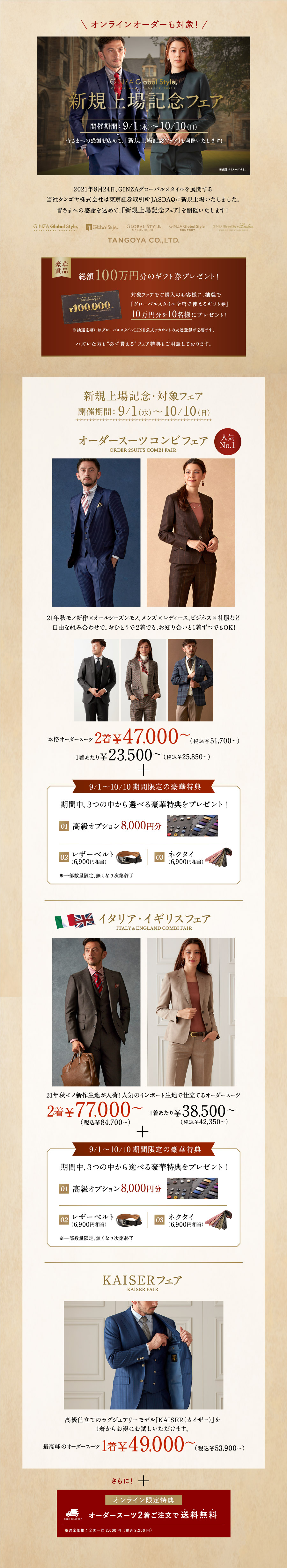 (※オンラインオーダーの場合、オーダースーツコンビフェアの特典は