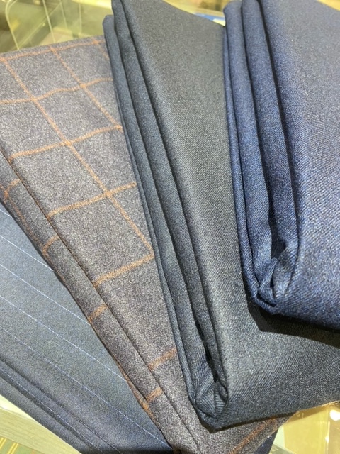 ウール100%の生地や、ウールにカシミヤとシルクの混紡生地など幅広く取り揃えております。