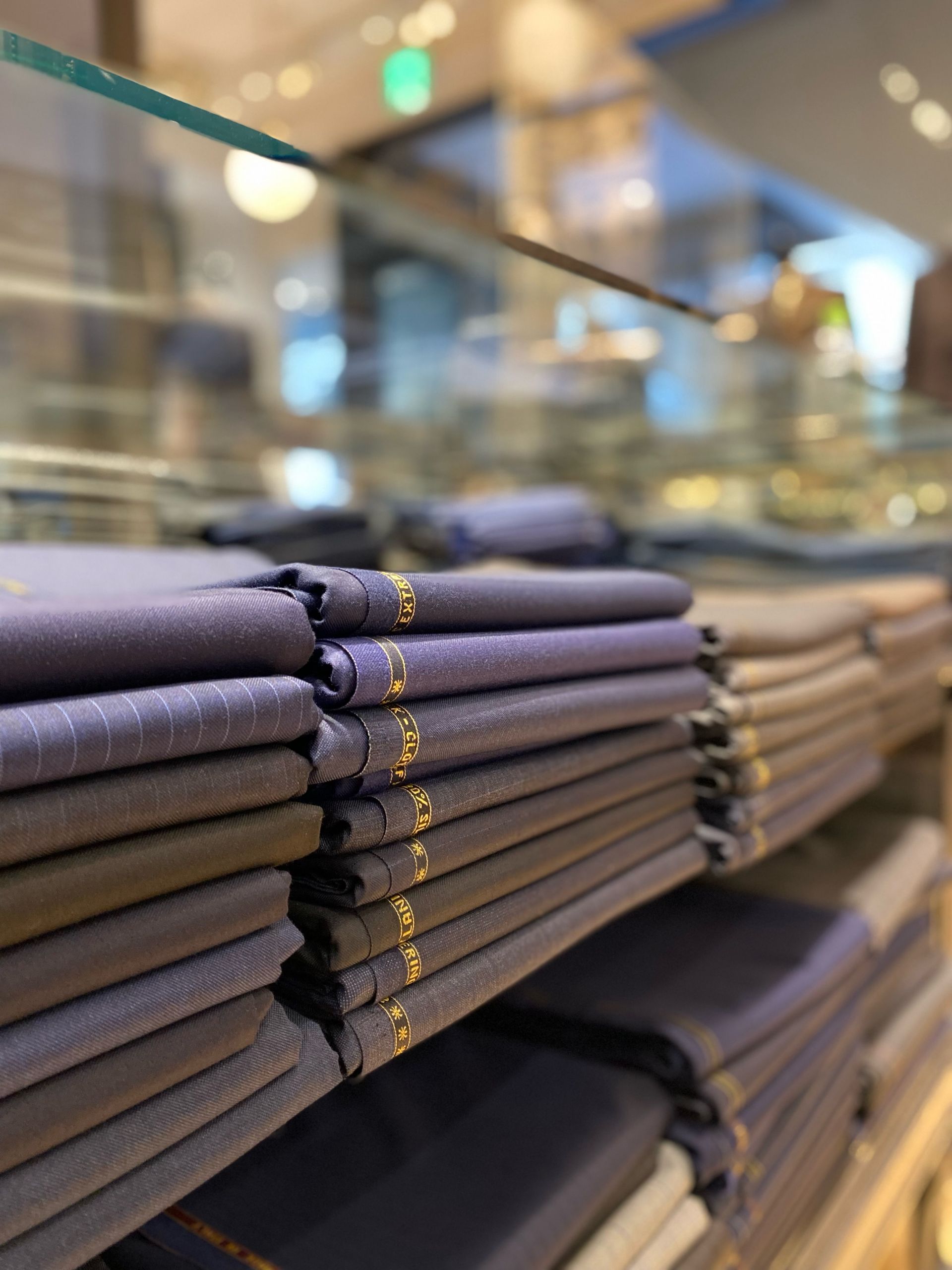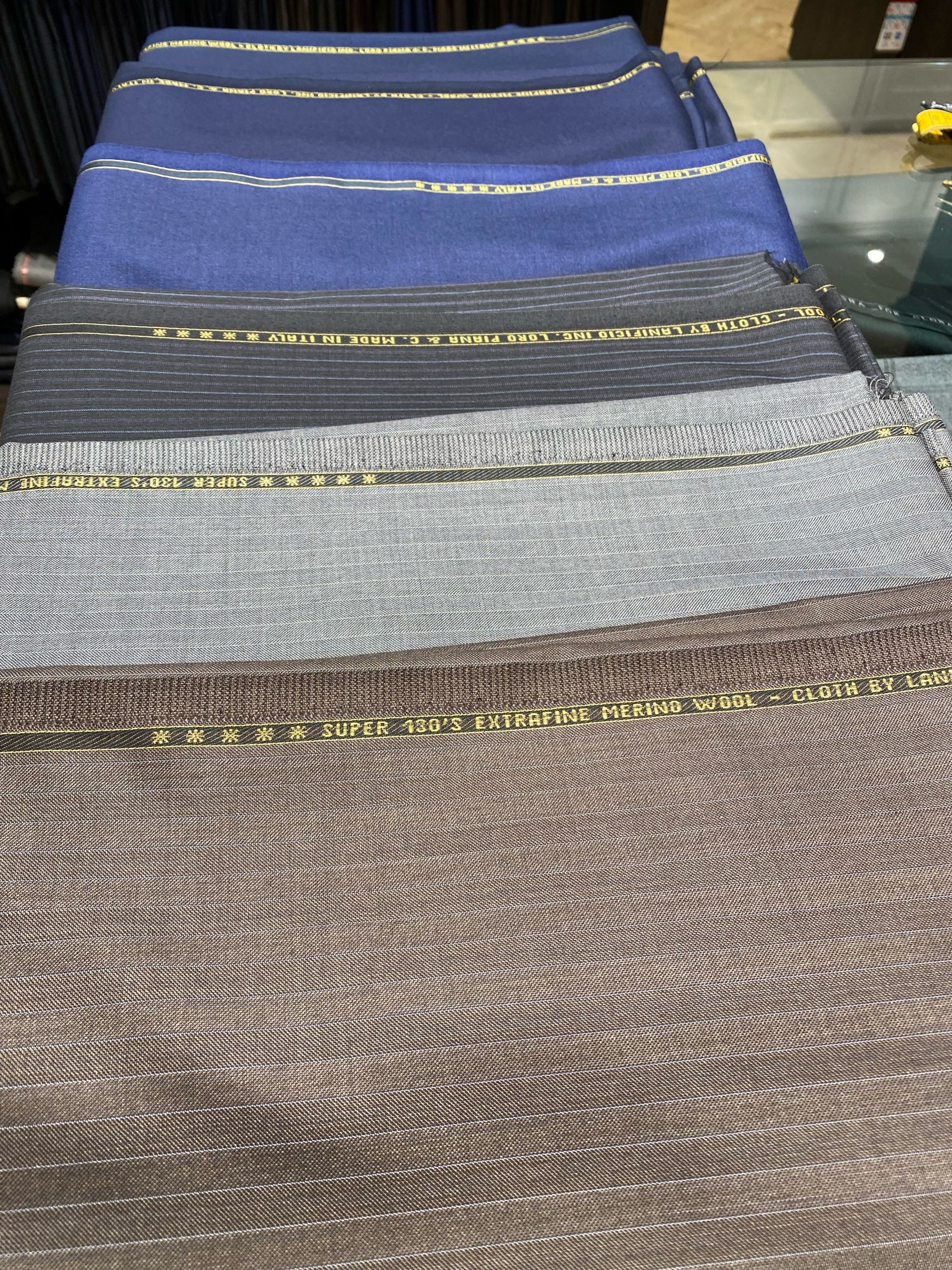 スーツ生地は色柄もスタンダードなものから柄物までご用意がございます!
