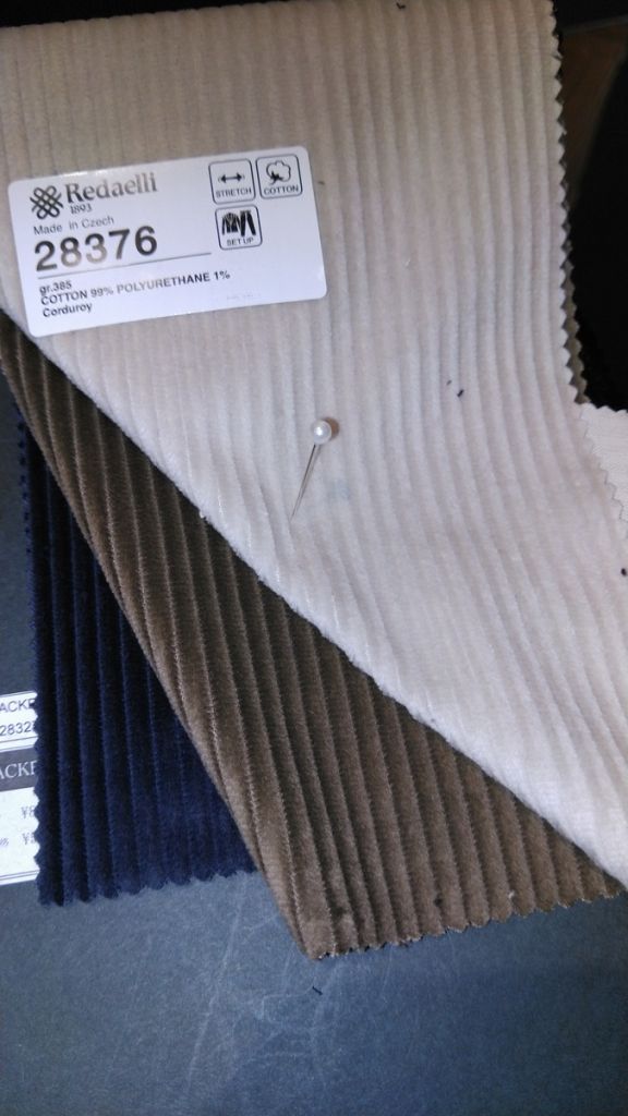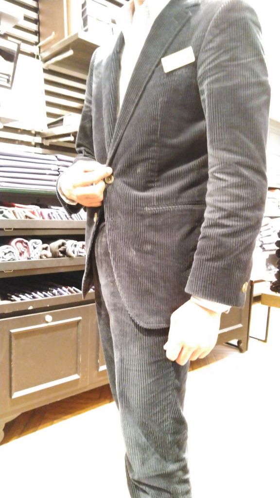 通勤するのに寒いため最近作成したコーデュロイ生地のスーツを着る機会が増えました。