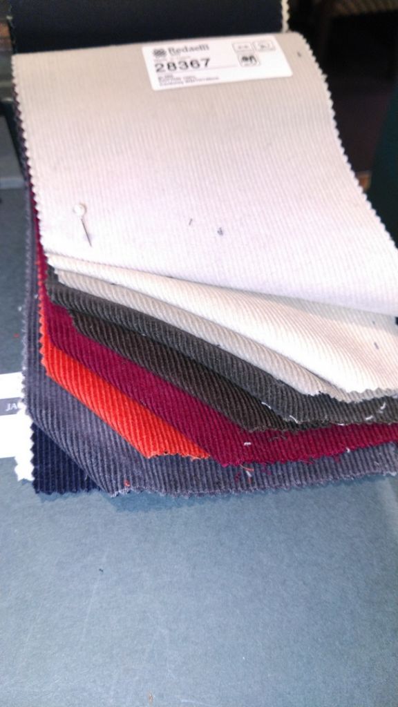 自分と同じ生地のコーデュロイ素材(COTTON100%)は太い畝が3色と細い畝が9色展開しておりますので