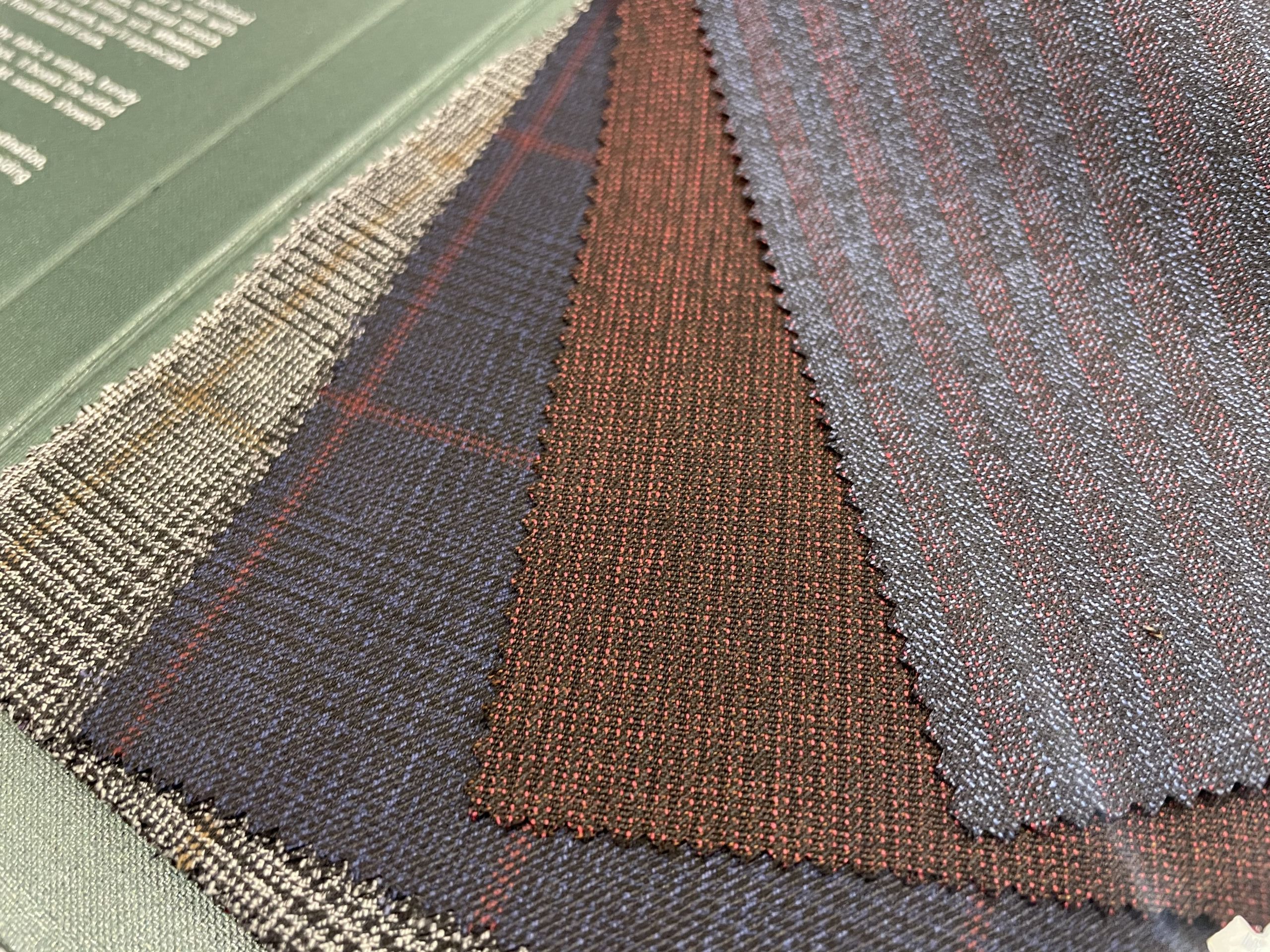 本日は抗菌機能、撥水加工とストレッチ機能もある近未来の生地バンチ、