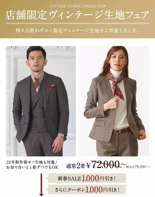 ■オーダースーツをお買い上げの方に、2時間分サービス券 をお渡しいたします。