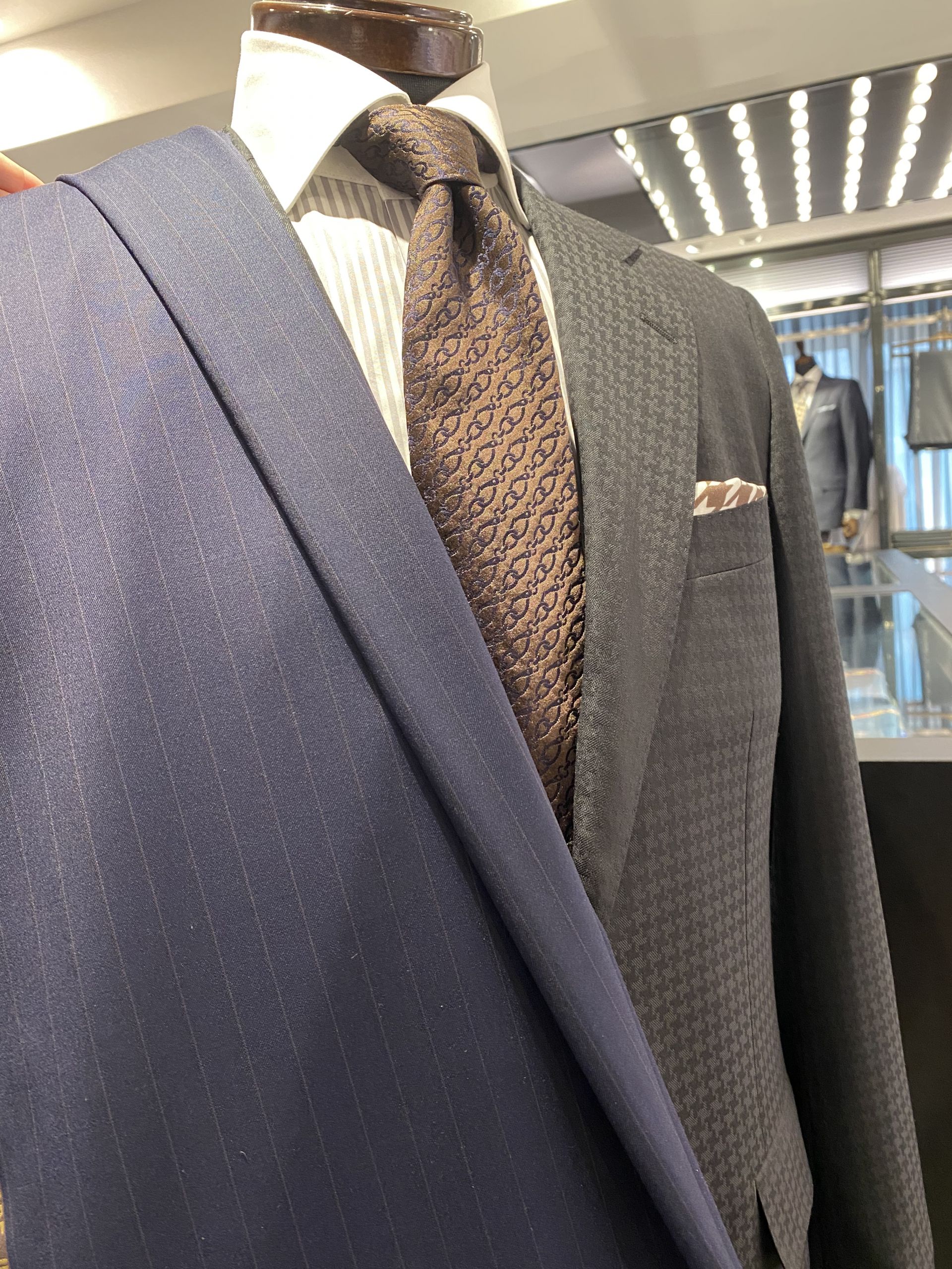 少し明るめのネイビーにブラウンのピンストライプ、、、