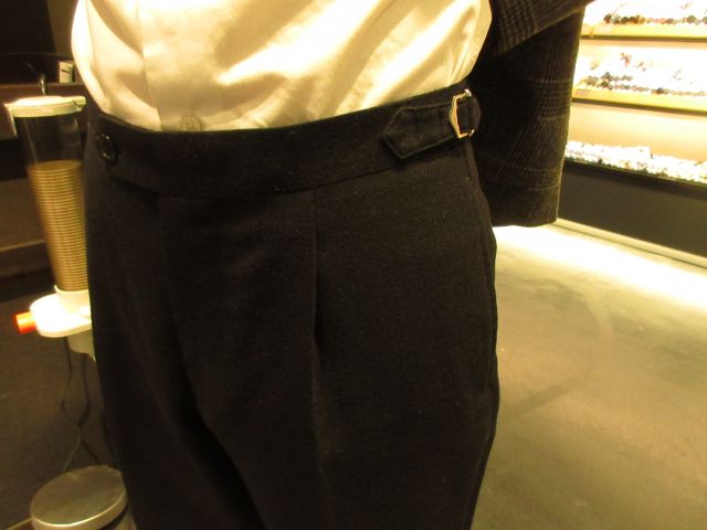昨今のクラシック回帰の流れに伴い見直されつつスタイルで、ベルトを必要としない分よりドレッシーでエレガントな印象となります。