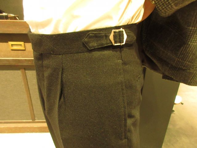 ベルトレス脇尾錠のスラックスはオプションで¥3000で可能ですので、是非一度お試しください。