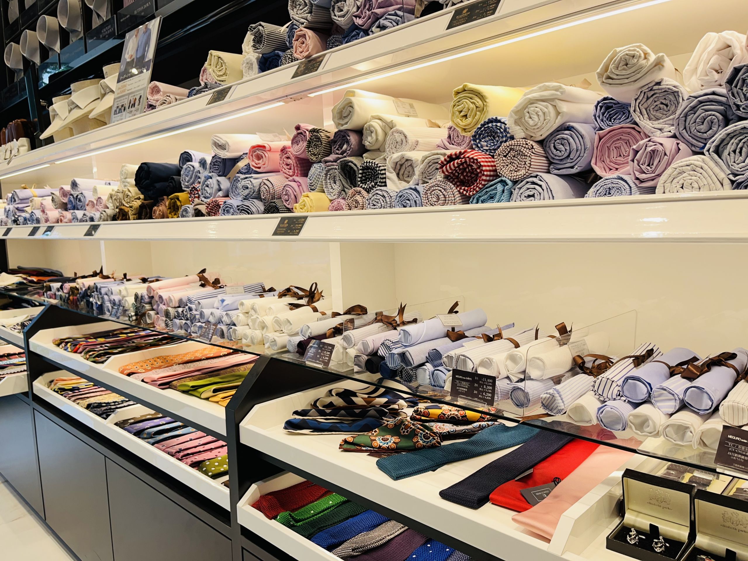 どんな色のスーツにも馴染みやすいので、白と合わせてご注文されるお客様が多いです。