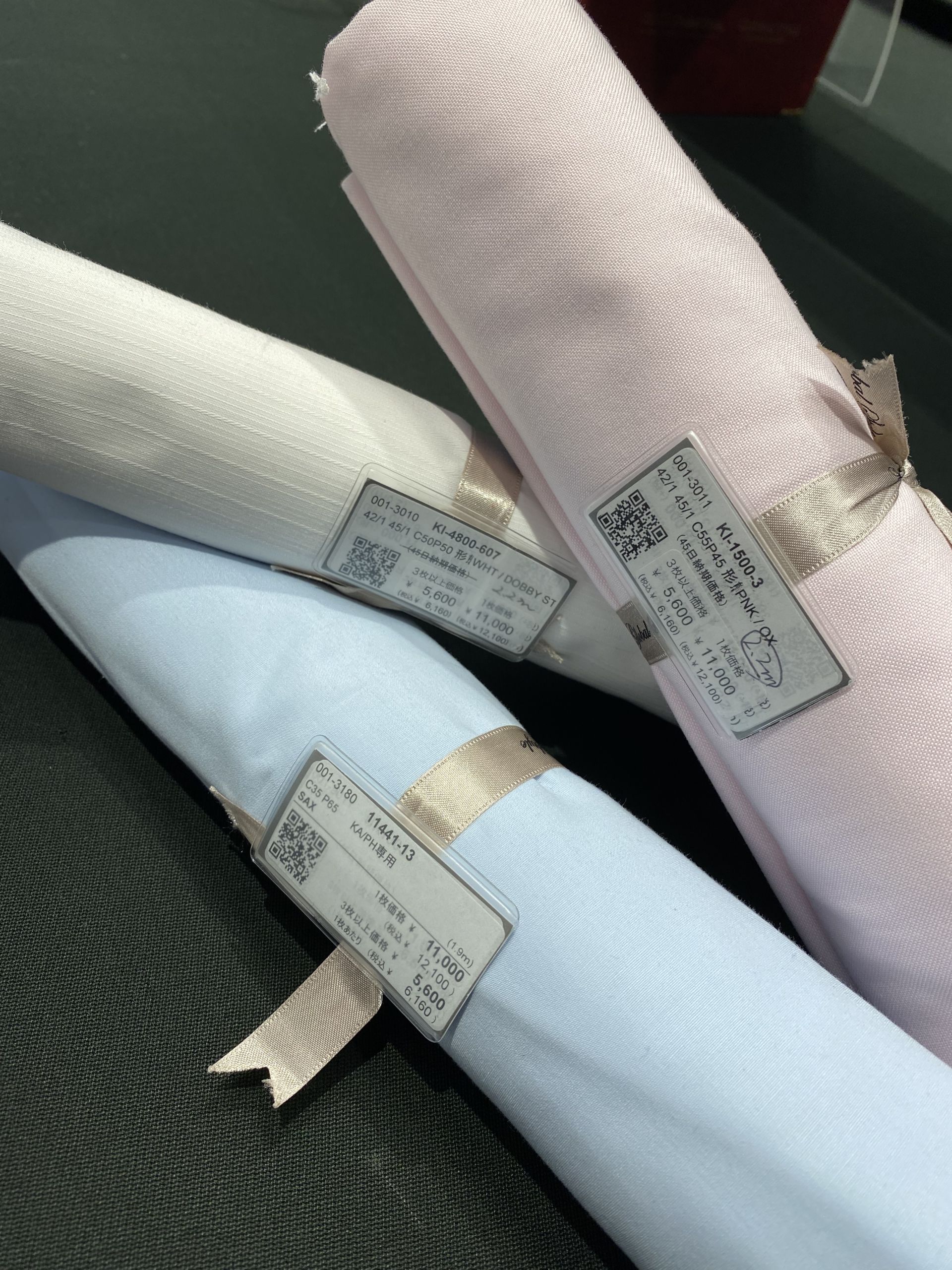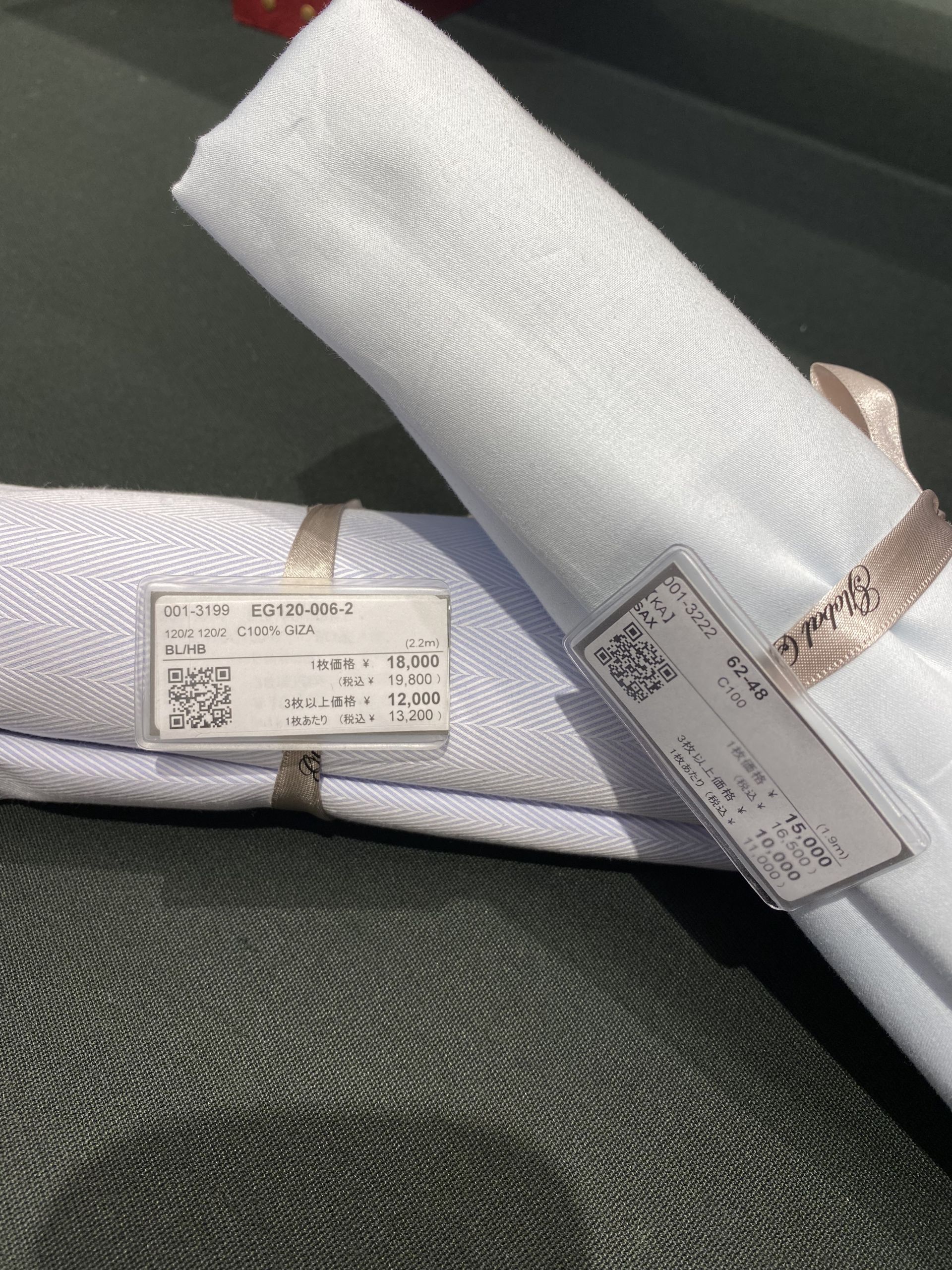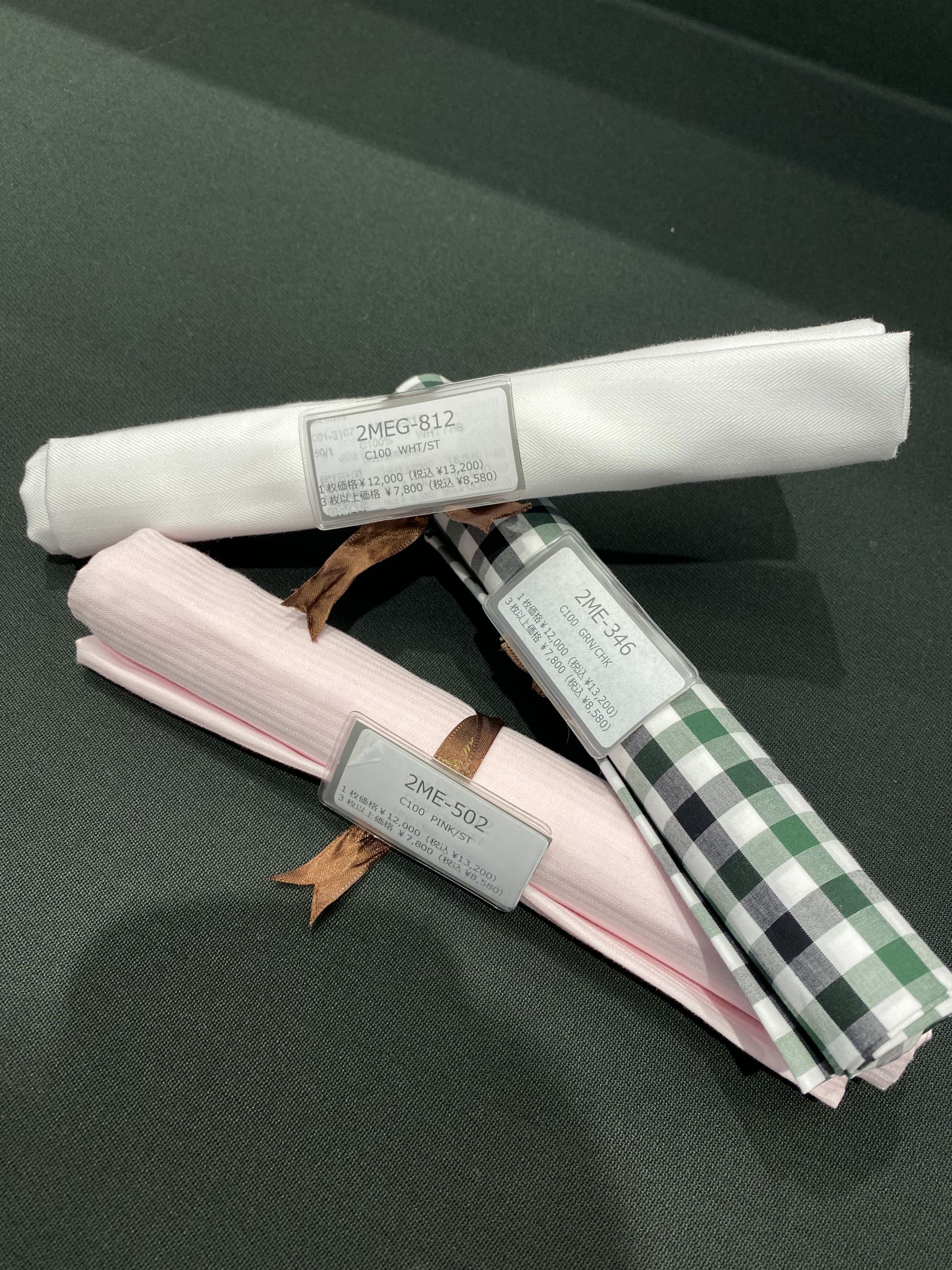 実際に触り比べていただき、ぜひこの機会にご体型にあわせたシャツをお作りください~(^^♪