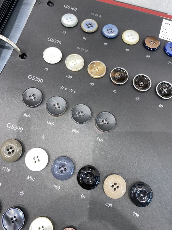 こんな感じで定番から変わったお色まで幅広く釦の種類もございますので