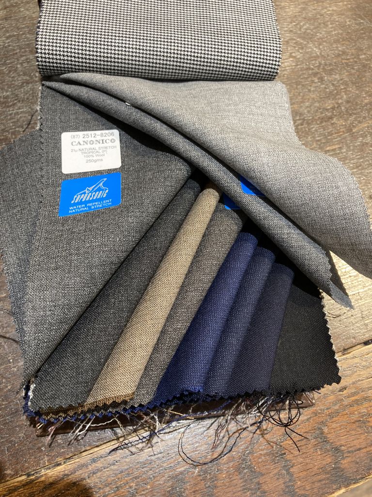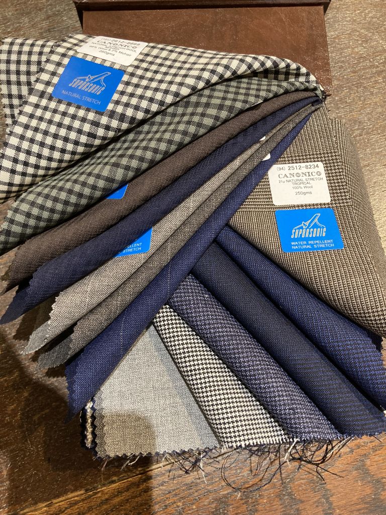 特徴としては強撚糸でシワになりにくい性質・ウール特有のナチュラルストレッチ・日常生活に役立つ撥水性。