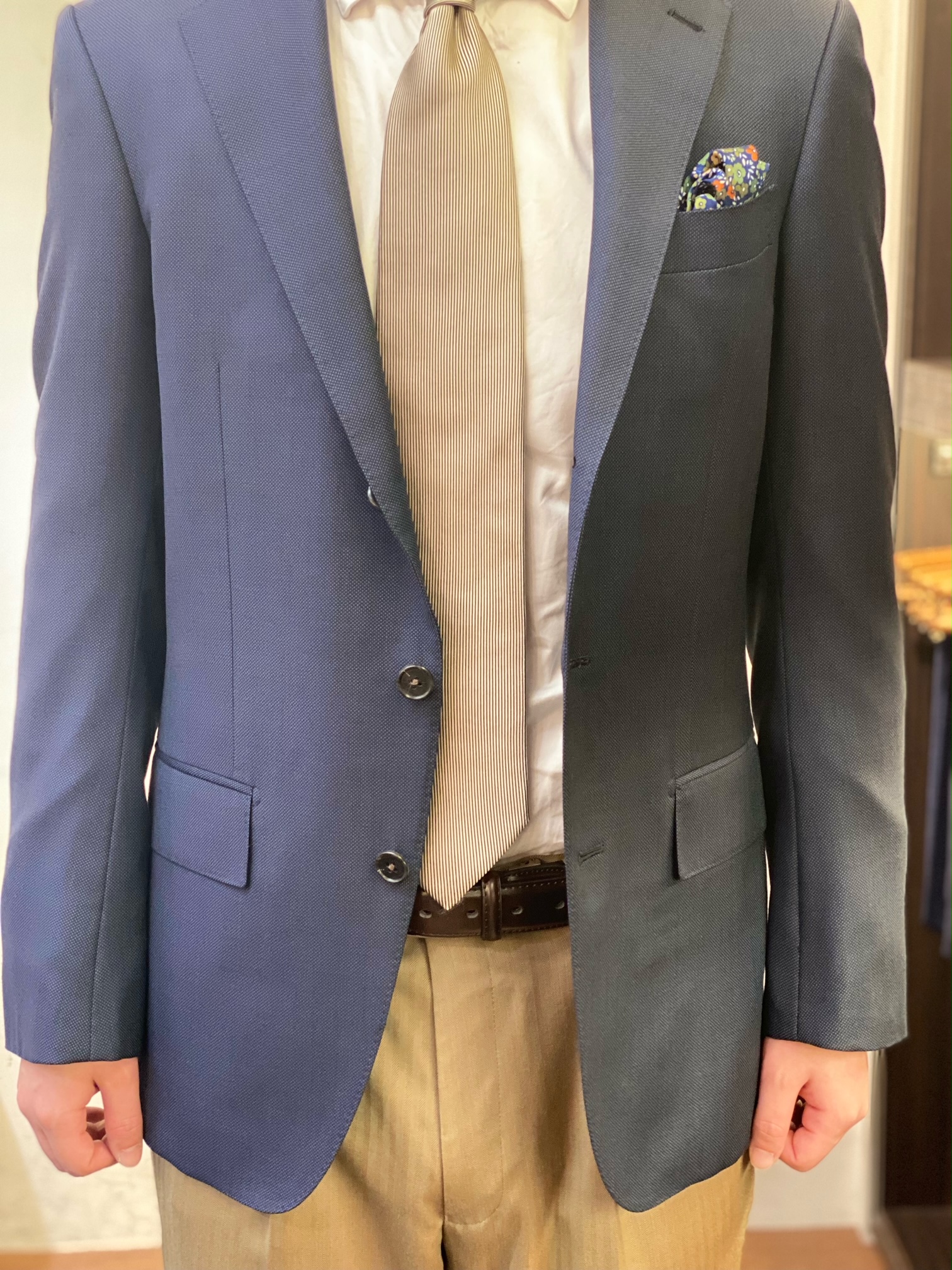 そんな時は、一見無地の生地に見えますが織り柄が表現された「バーズアイ」という柄が、おすすめ致します。