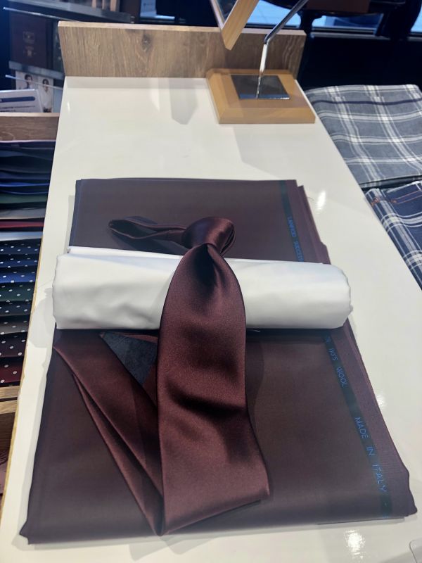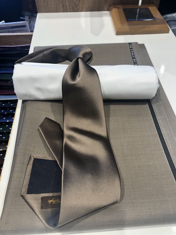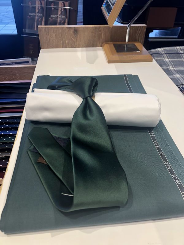 合わせ方がよくわからない方は同系色のスーツと合わせていただきたいです。