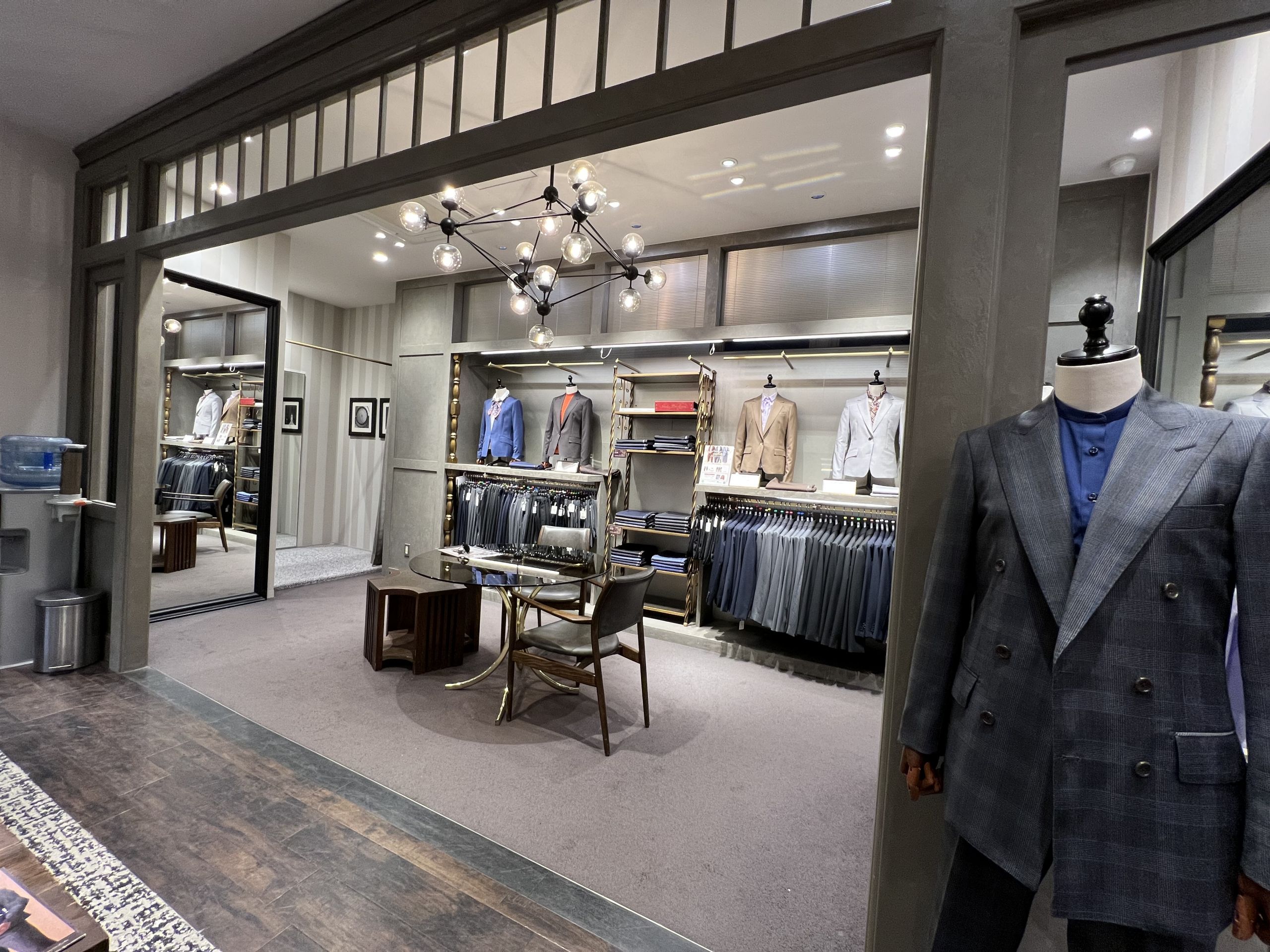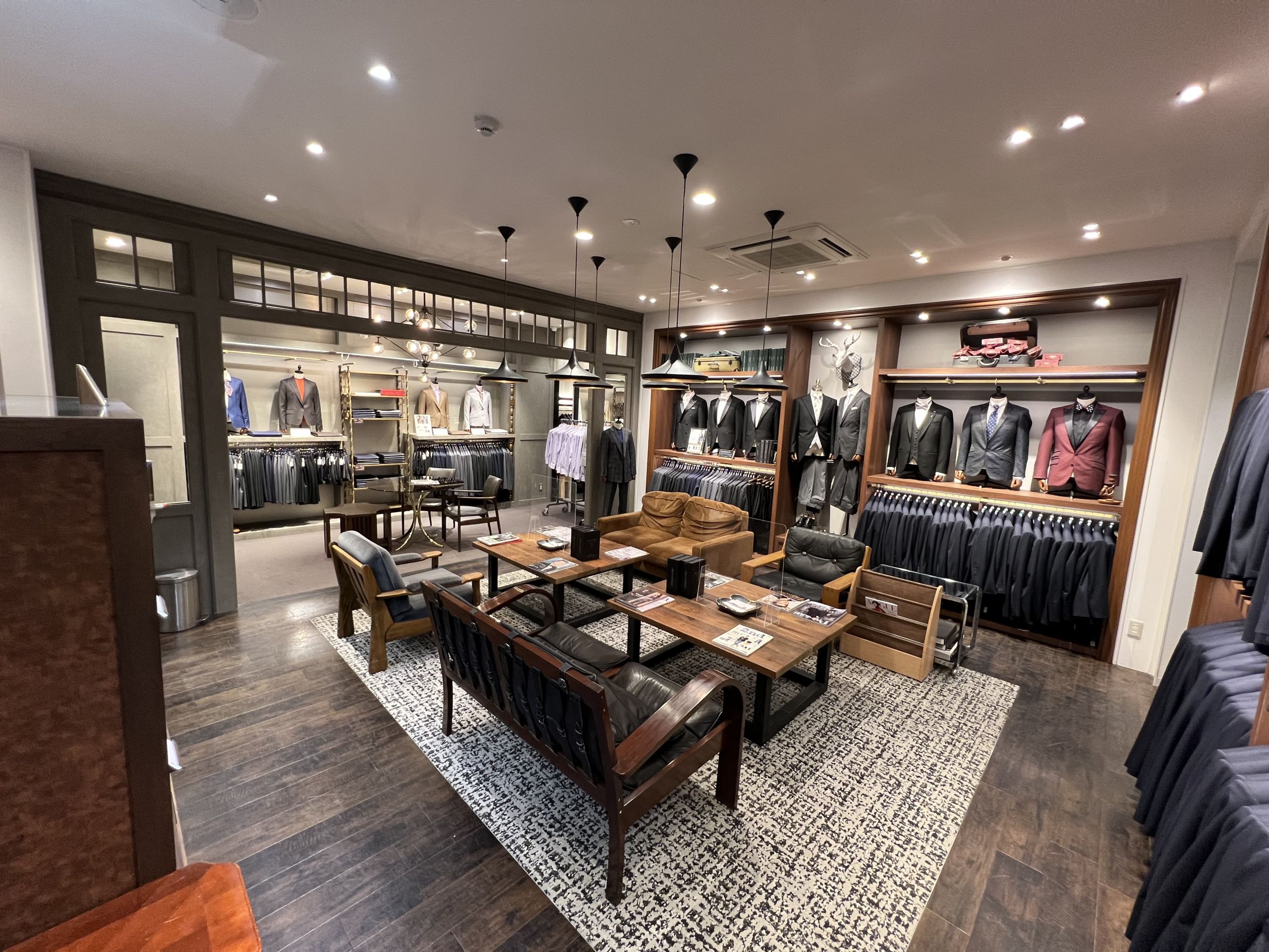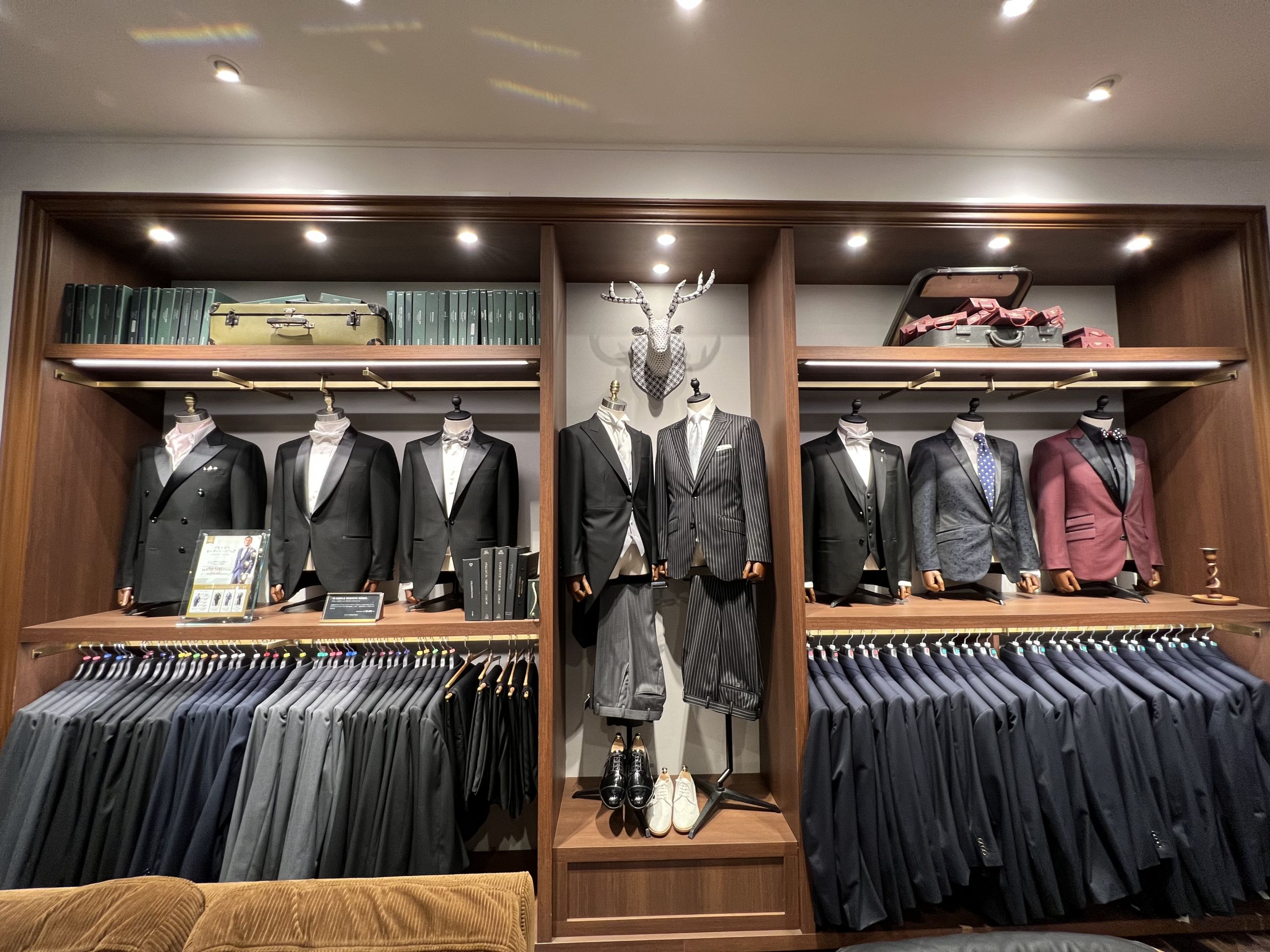 奥にはブライダル用のタキシードやモーニングも揃えております。