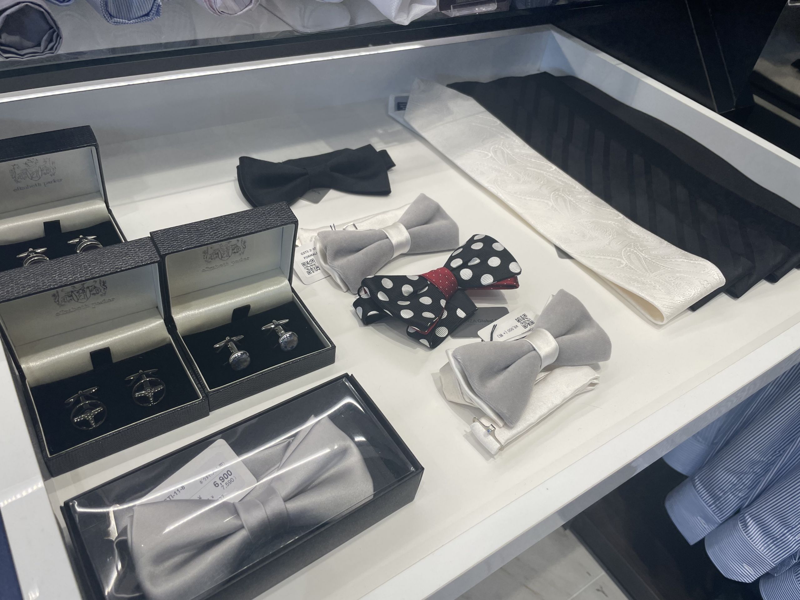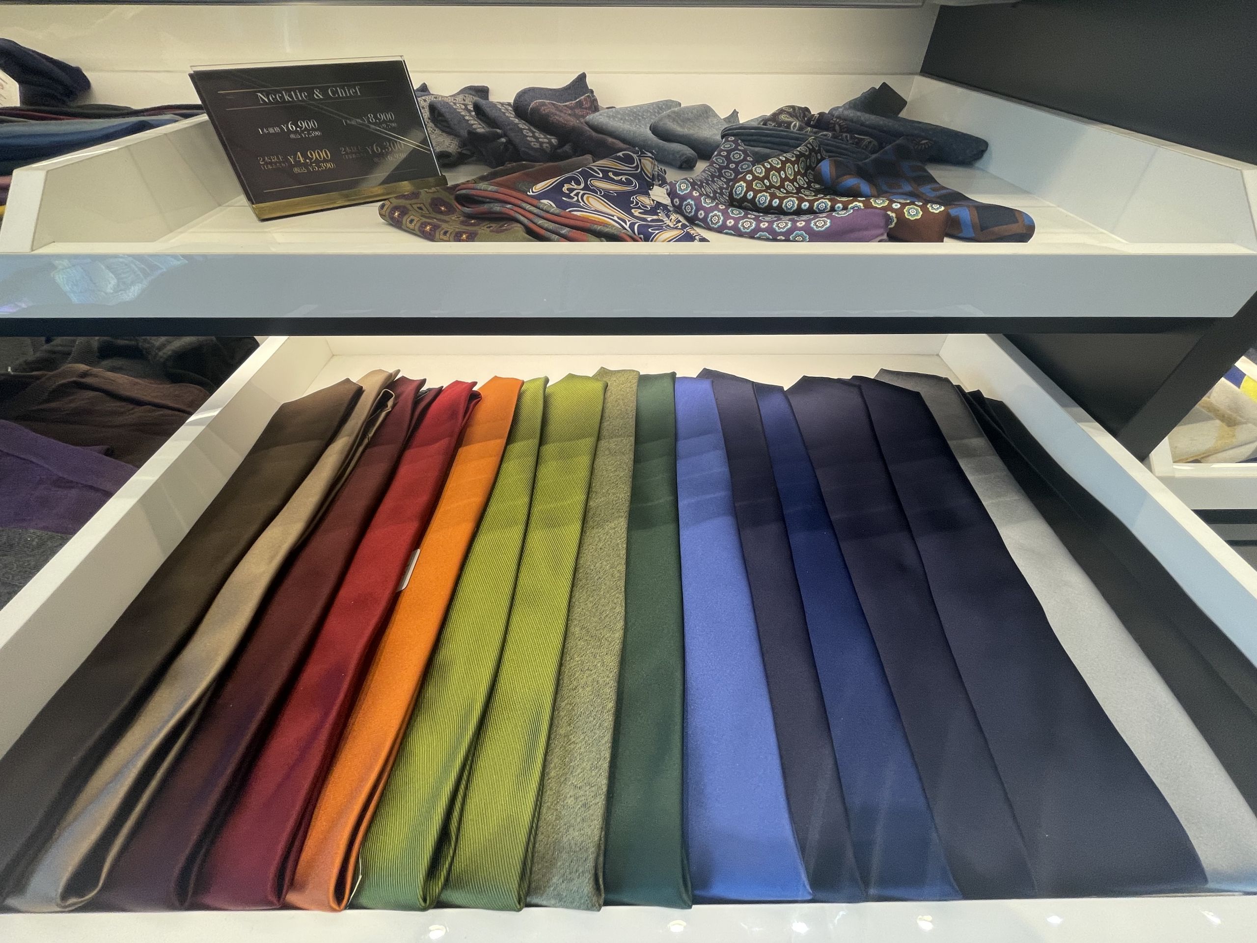 今回は、横浜西口店にあるネクタイなどの小物類をご紹介いたします