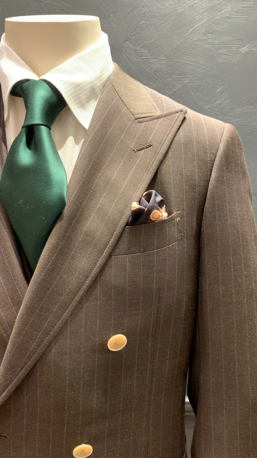 ダブルのスーツにはピークドラペルを合わせるのが基本です。
