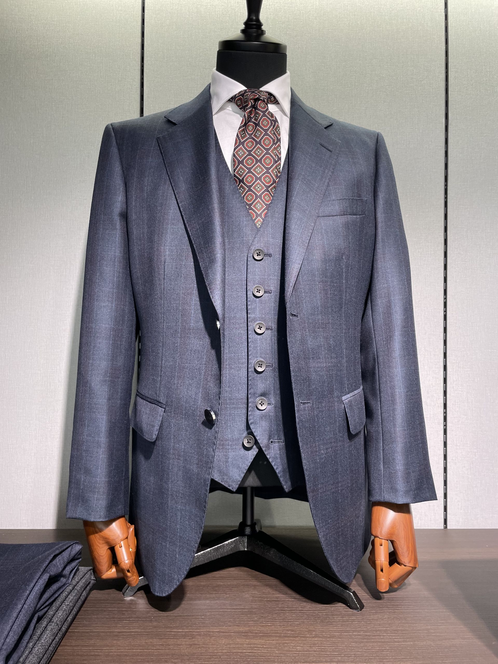 同じくネイビーのお色味、柄物にはなりますがそこまで派手さはないのがポイントですかね。