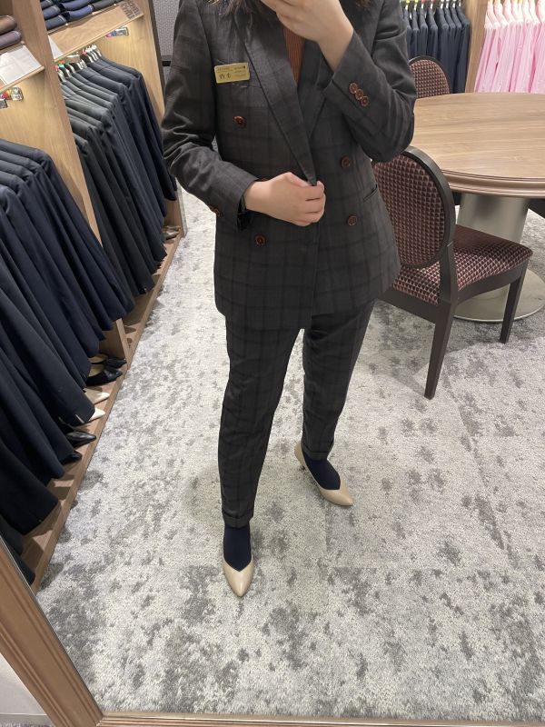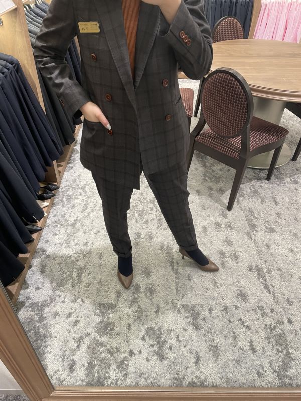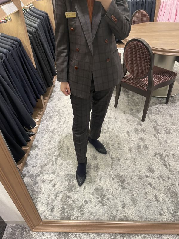 スーツに柄いりのブラウンなので、明るいお色味がアクセントになります!