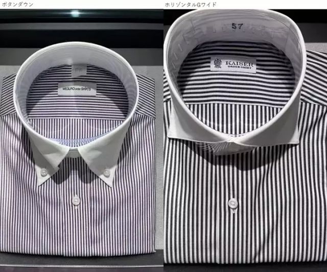 ボタンダウンはカジュアルな着こなしに、ホリゾンタルは清潔感のある着こなしになります。