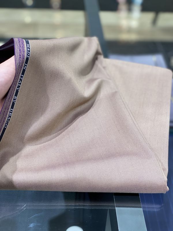 こちらは少し変わった色味のベージュのスーツ生地となっています。