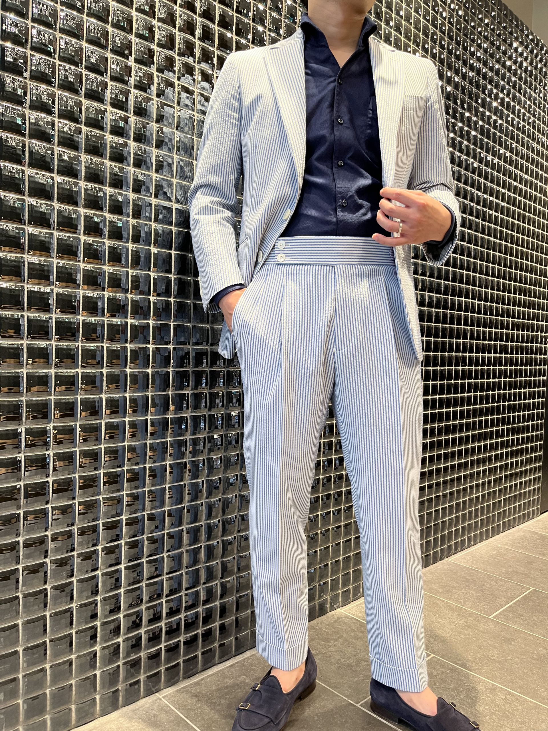 暑くなるとちらほらとお見かけするようになるシアサッカーになります。