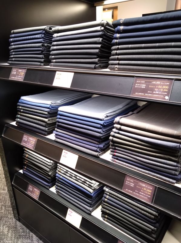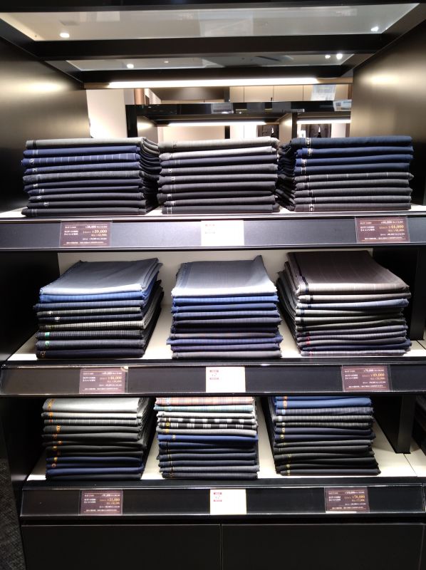 こちらに陳列されているコーナーでスーツ生地をお選びいただいたお客様には、