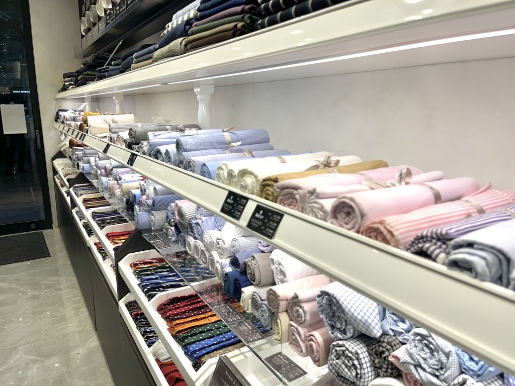 当店では色や柄、衿、カフスなどを選ぶ事ができ、