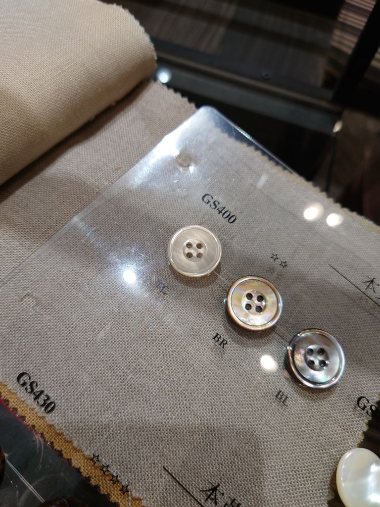 釦は夏らしい貝釦、白か茶か悩み中です…
